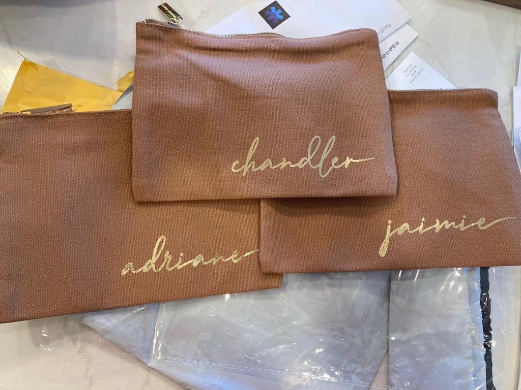 This is a beautiful, well-made, and useful gift! All of my bridesmaids' faces lit up when they saw how pretty the personalization was.