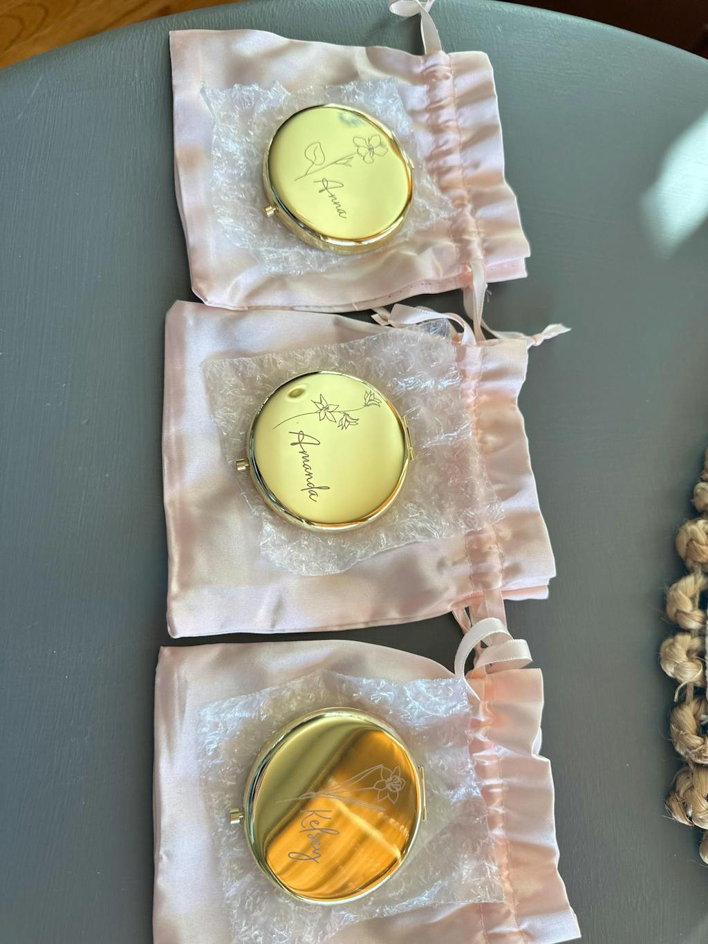 Beautifully crafted with high quality materials. Each one is perfect and exactly as described. Can't wait to give these to my bridesmaids!