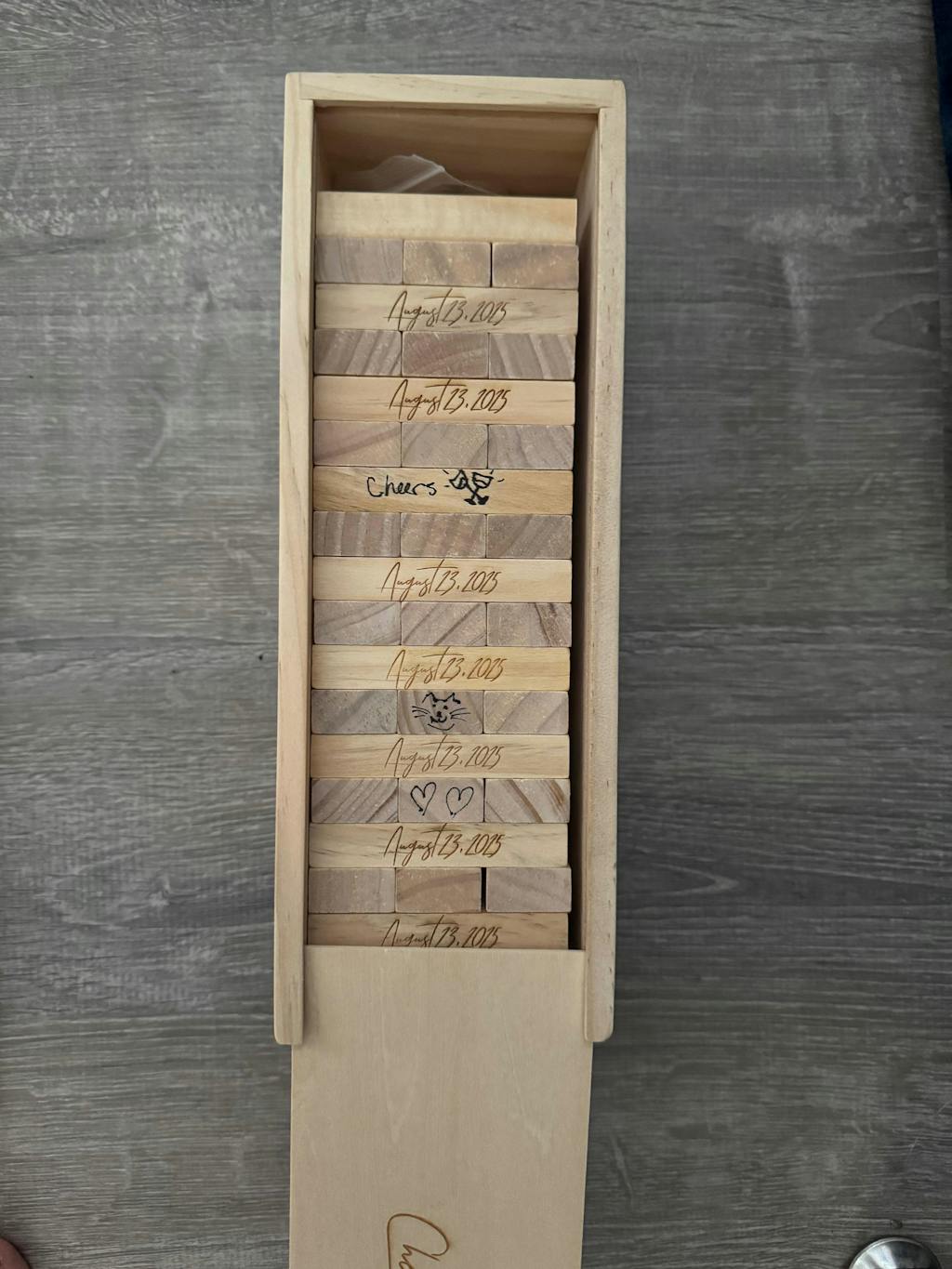 I recently ordered a custom jenga for my wedding guestbook from a seller on Amazon that was…eh, and tried to DIY it last minute before the big day. Huge mistake - and it was looking impossible to get a replacement last minute. I was fully ready to abandon our guestbook but hundred hearts was a life saver! The jenga set is on the smaller side, but it is so cute and much better quality and design than the amazon version I initially purchased. And hundred hearts’ customer service was fantastic! I emailed my situation immediately upon purchase and they processed and shipped the item ASAP, making it the day before our wedding. And it was a huge hit! I was initially not sure about the price (and believe me you pay a premium when you ship it last minute) but I’m so happy with the outcome. All of our guests loved the idea, and now we have a piece of our day that our family can enjoy over the years.